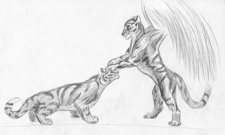 Еще пара рисунков. На наброске персонаж один, просто размышляла, как переносится центр тяжести при появлении у персонажа крыльев. Цветной рисунок сделан рл материалами: пастель, акрил, акварель.