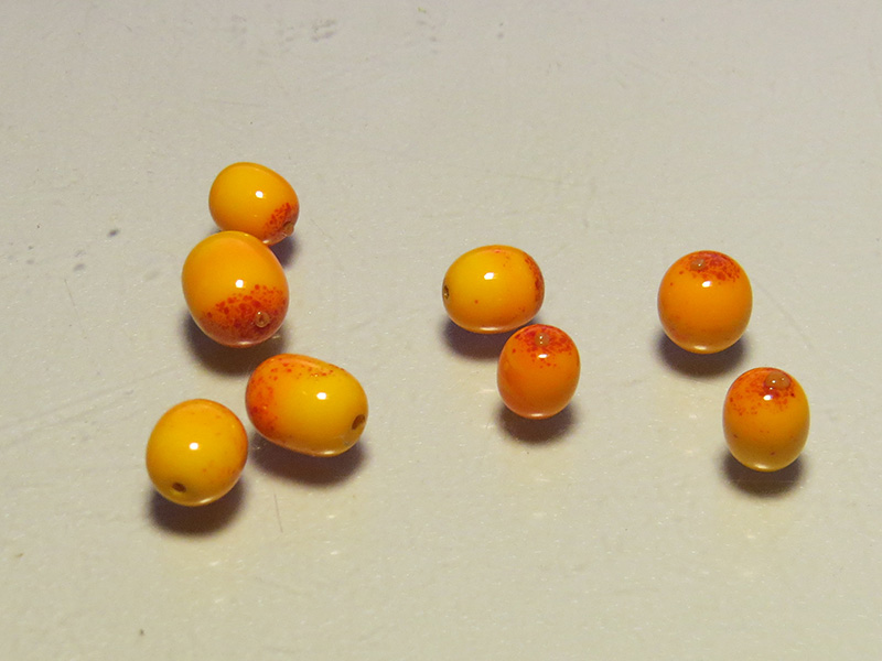 Еще один тест малинки (с совершенно рандомными чашелистиками, правильное стекло не взяла, сделала из того, что было) и очередная порция облепихи для браслета