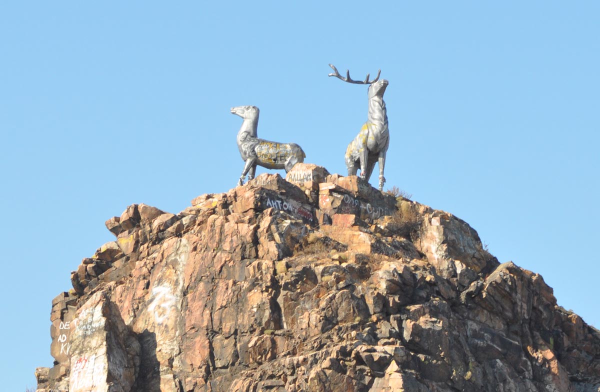 Выдержал паузу - ради оленей. Обратный путь у меня получился такой-же длинный - из Забайкальска в Иркутск. В том числе вышеуказанных оленей проезжал. Лучше б на первом свидании мое с ними знакомство и окончилось. "Здась был Вася" на боку и куча мусора вокруг...