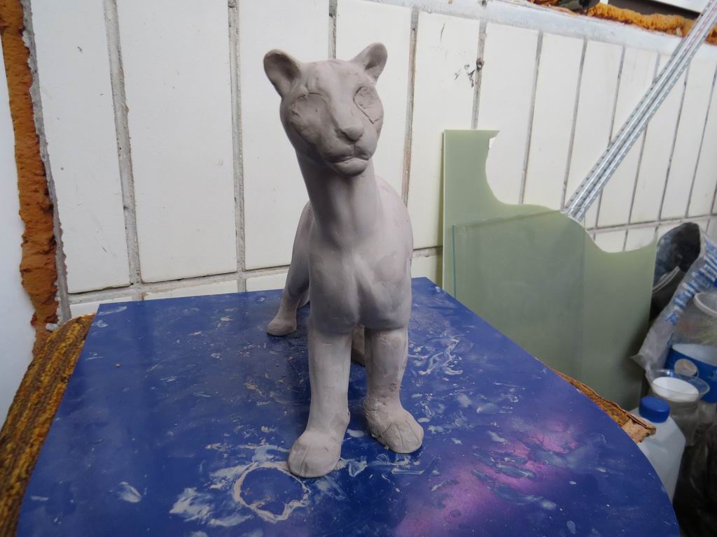 Запоротый проект. Не вдаваясь в подробности - лепила пуму из глины, уже дошла до выглаживания поверхности, когда поняла, что очень хочу ее побольше детализировать. Для детализации кое-где не хватало объема, решила долепить. Теперь оно ремонту не подлежит, будет образцом для следующей попытки и другой позы.